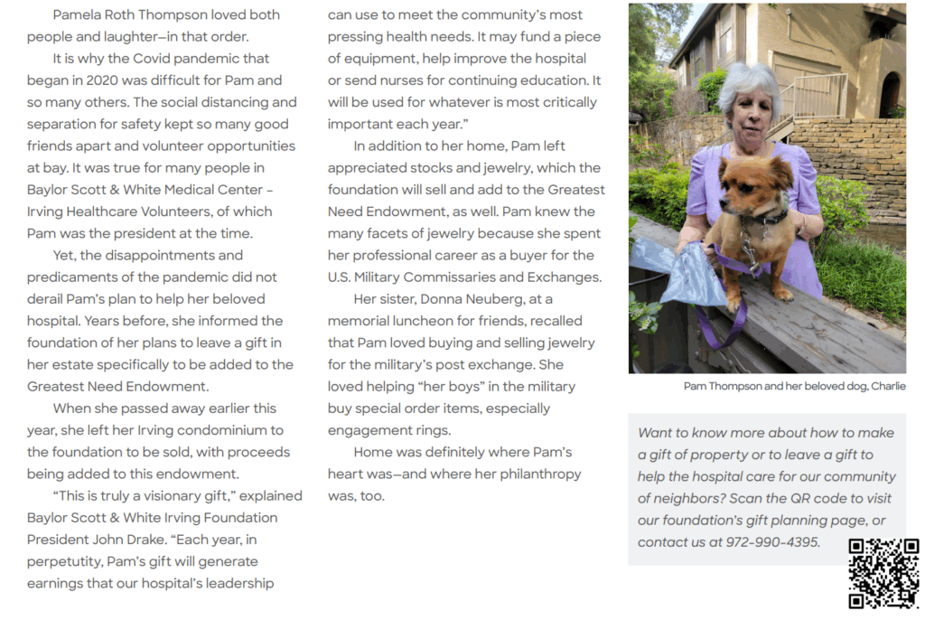 Pam Thompson’s final gift ensures ongoing support for critical needs